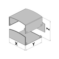 Kapsling bestående av en L-formad, en U-formad del och en panel. Delarna snäpps och skruvas ihop och går att demontera. Överdelen har en ämn kräkning över X-måttet
